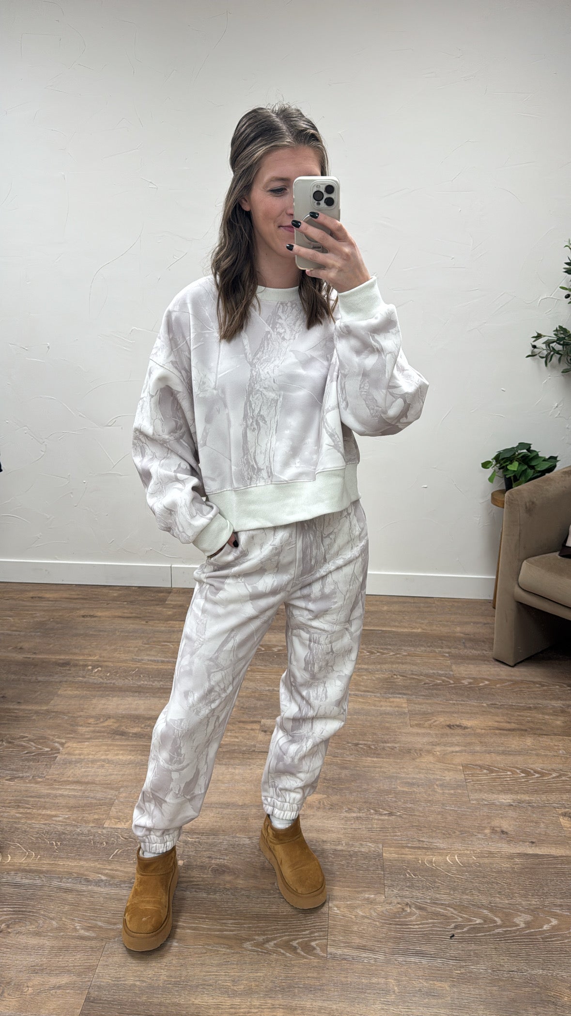model is 5'6" and a size 2 and wearing a size small in the sweatpants