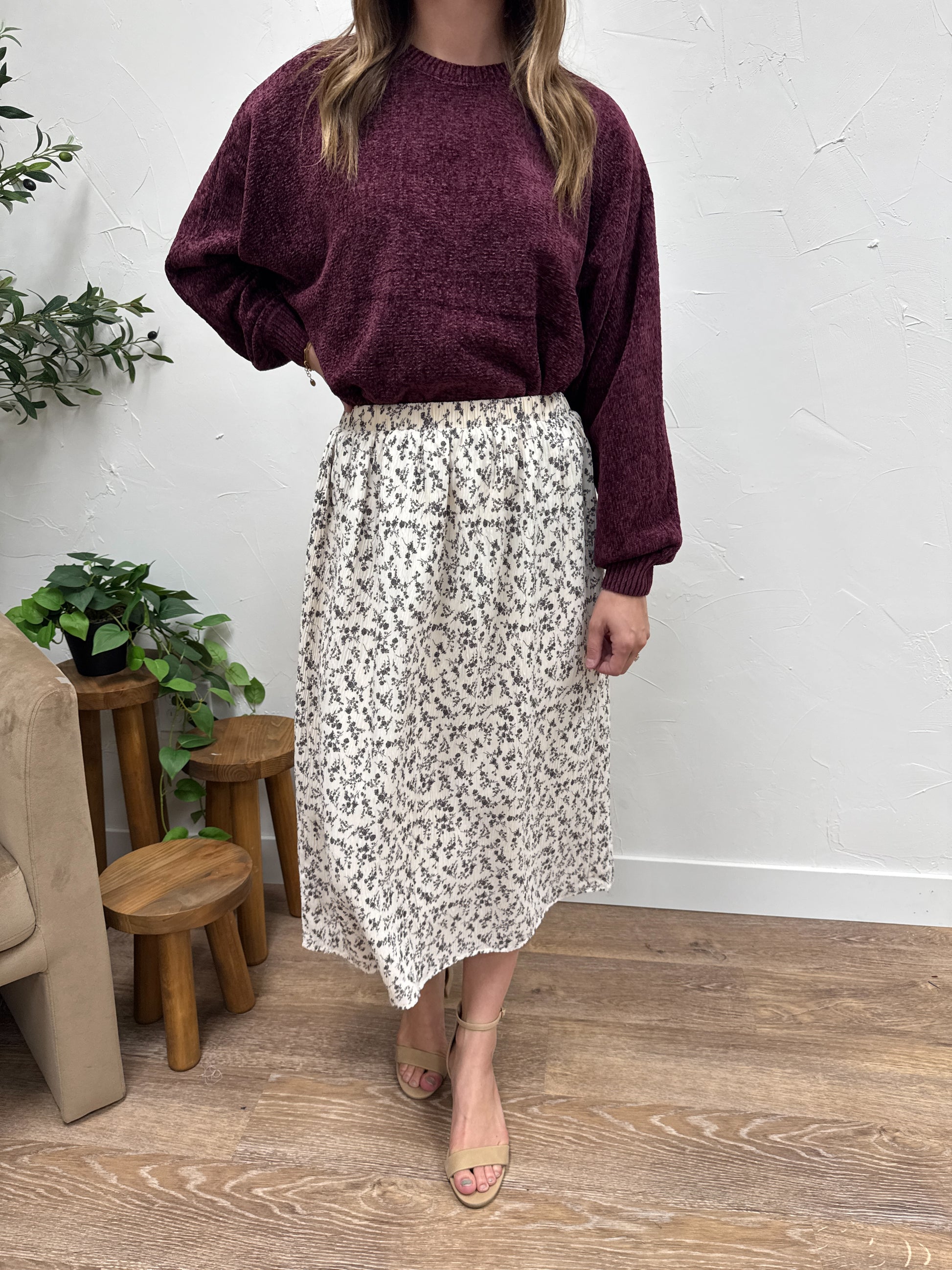 Floral Crinkle Midi Skirt