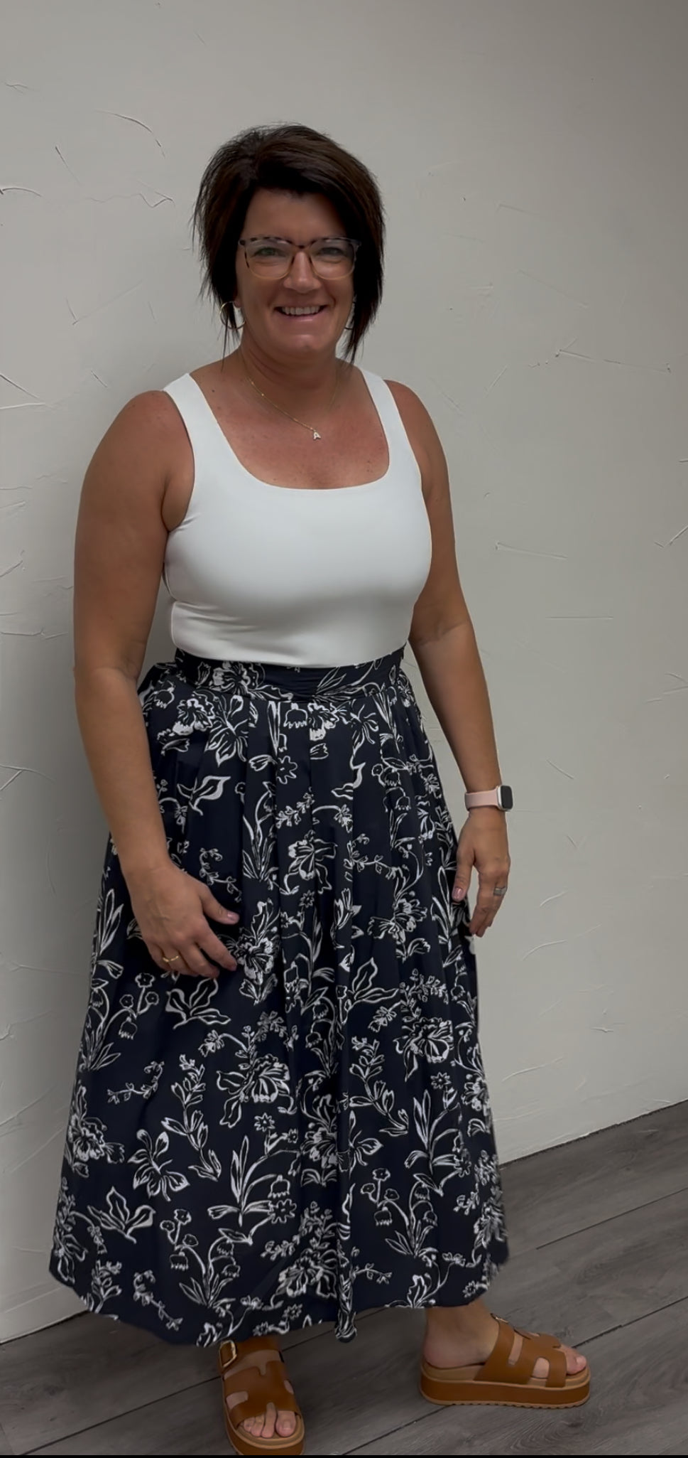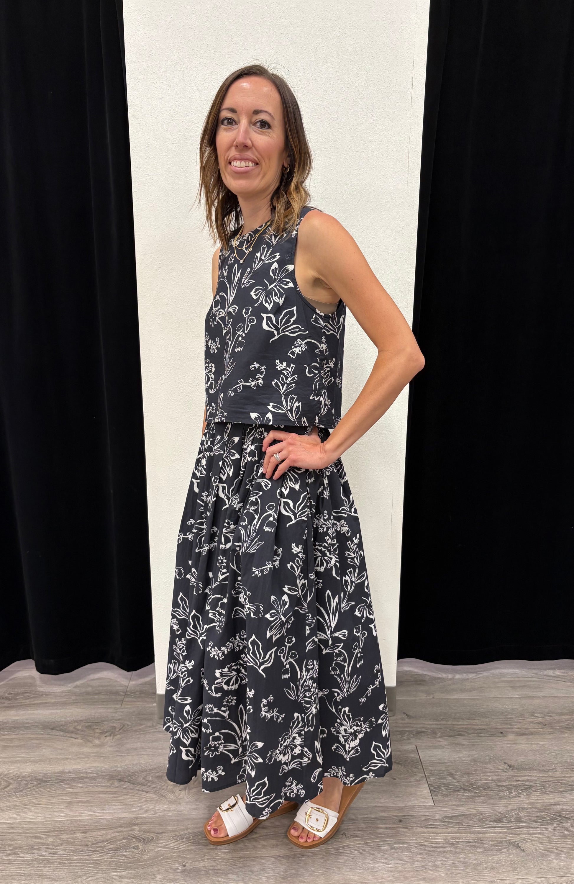 Floral print pleated midi skirt