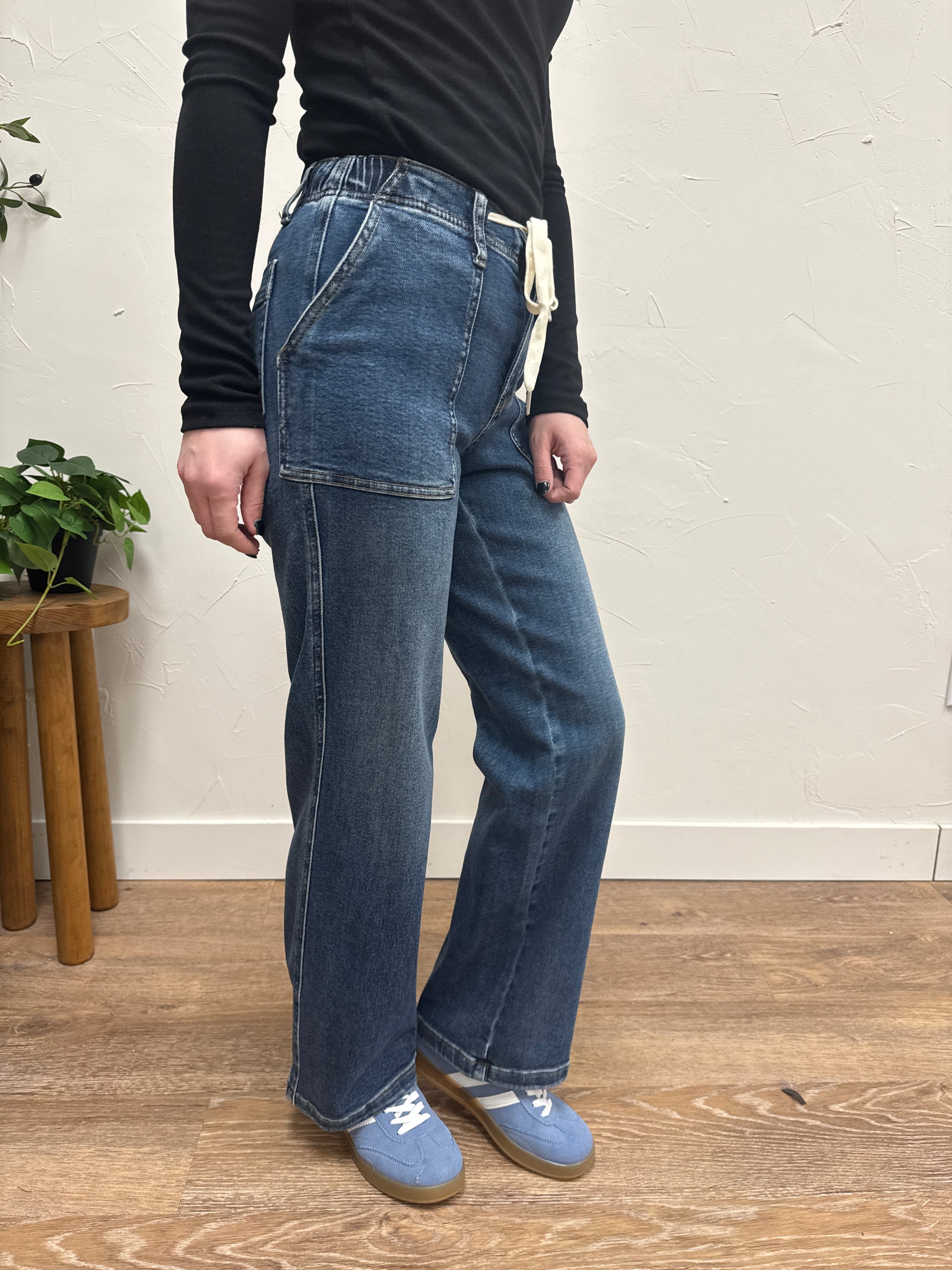 High Waist Judy Blue Drawstring Wide Leg Denim