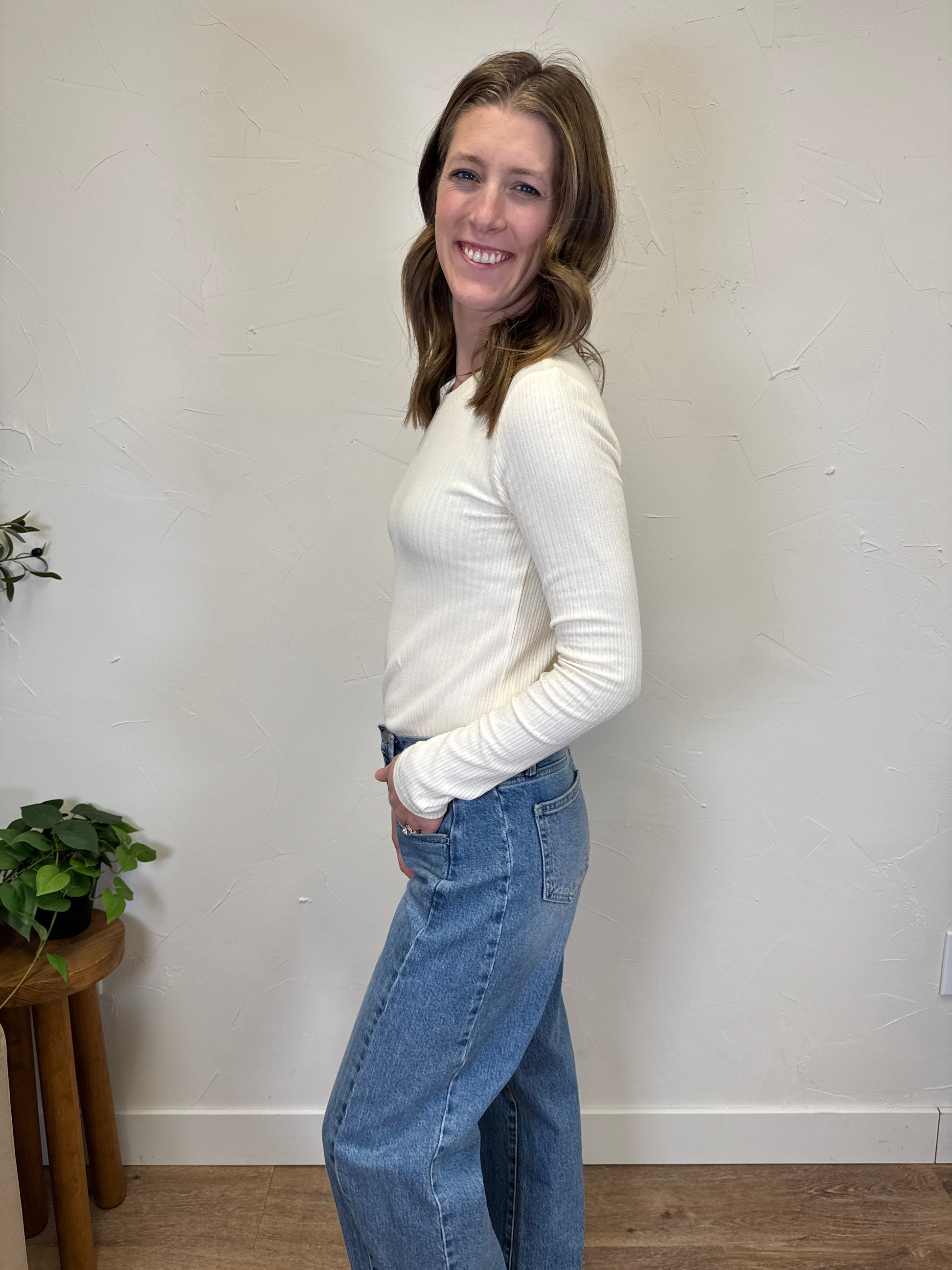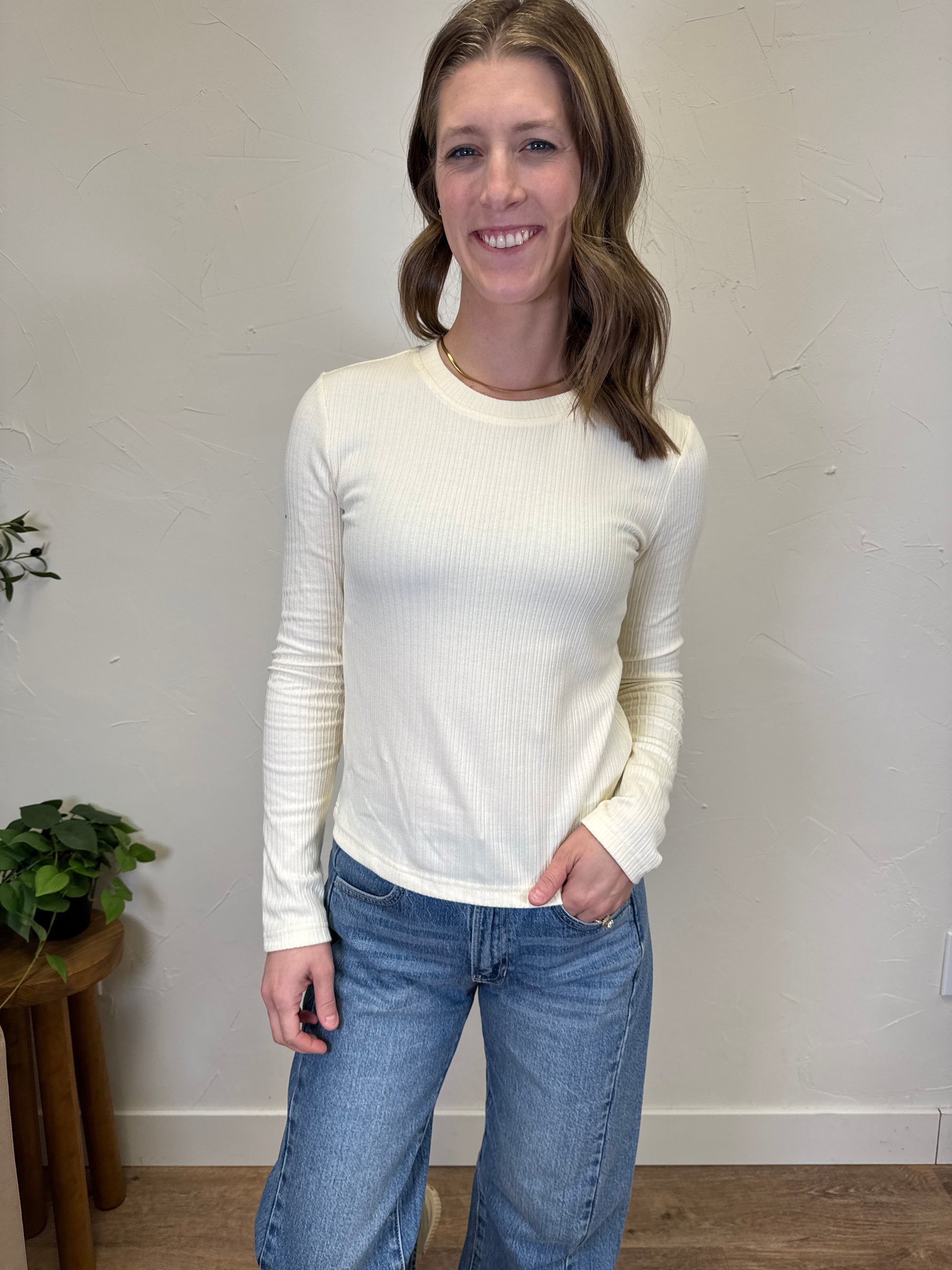 Model is 5’6” and wearing a size small. The shirt does run a bit fitted!