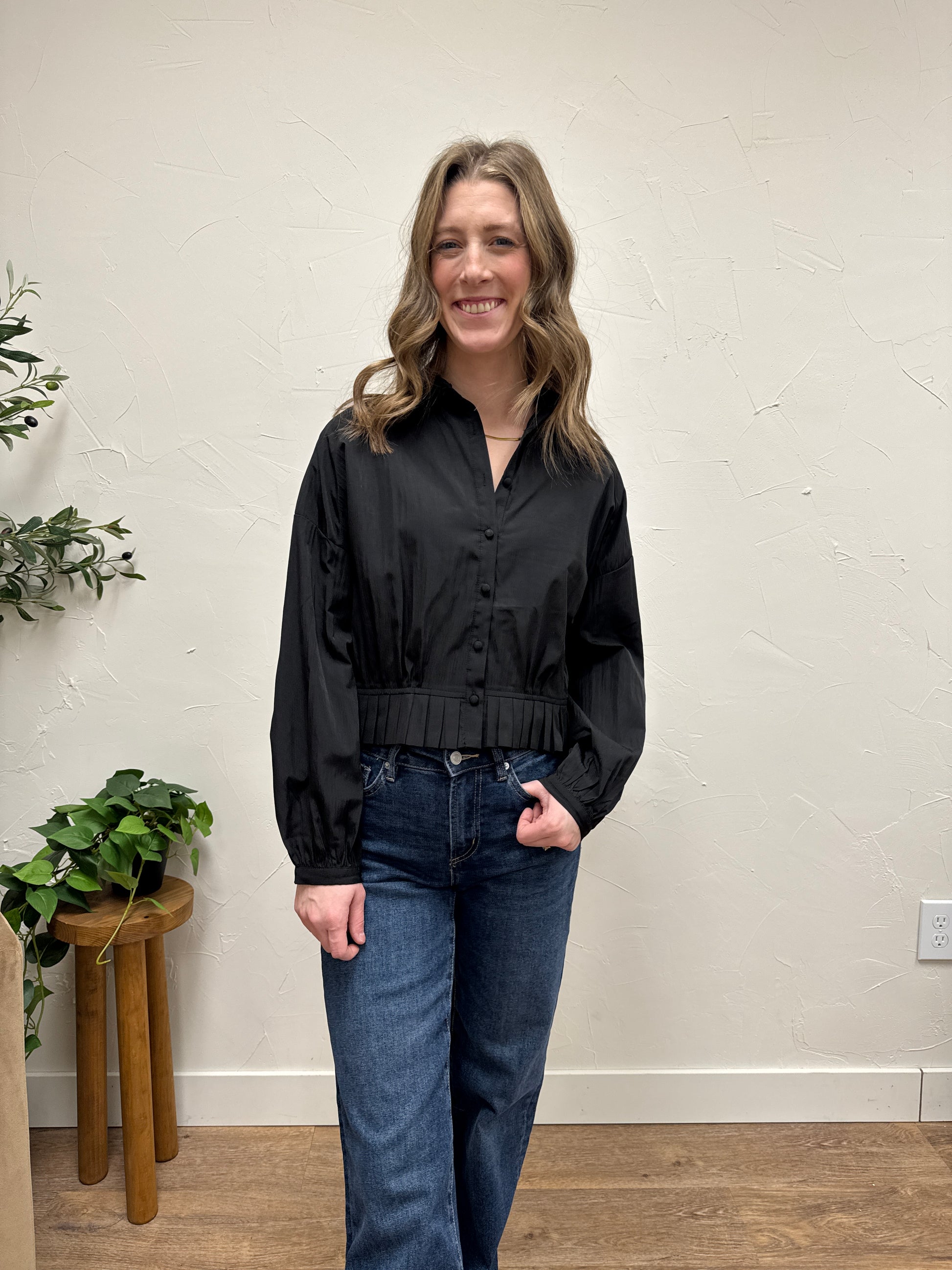 Pleated Hem Raglan Shirt
