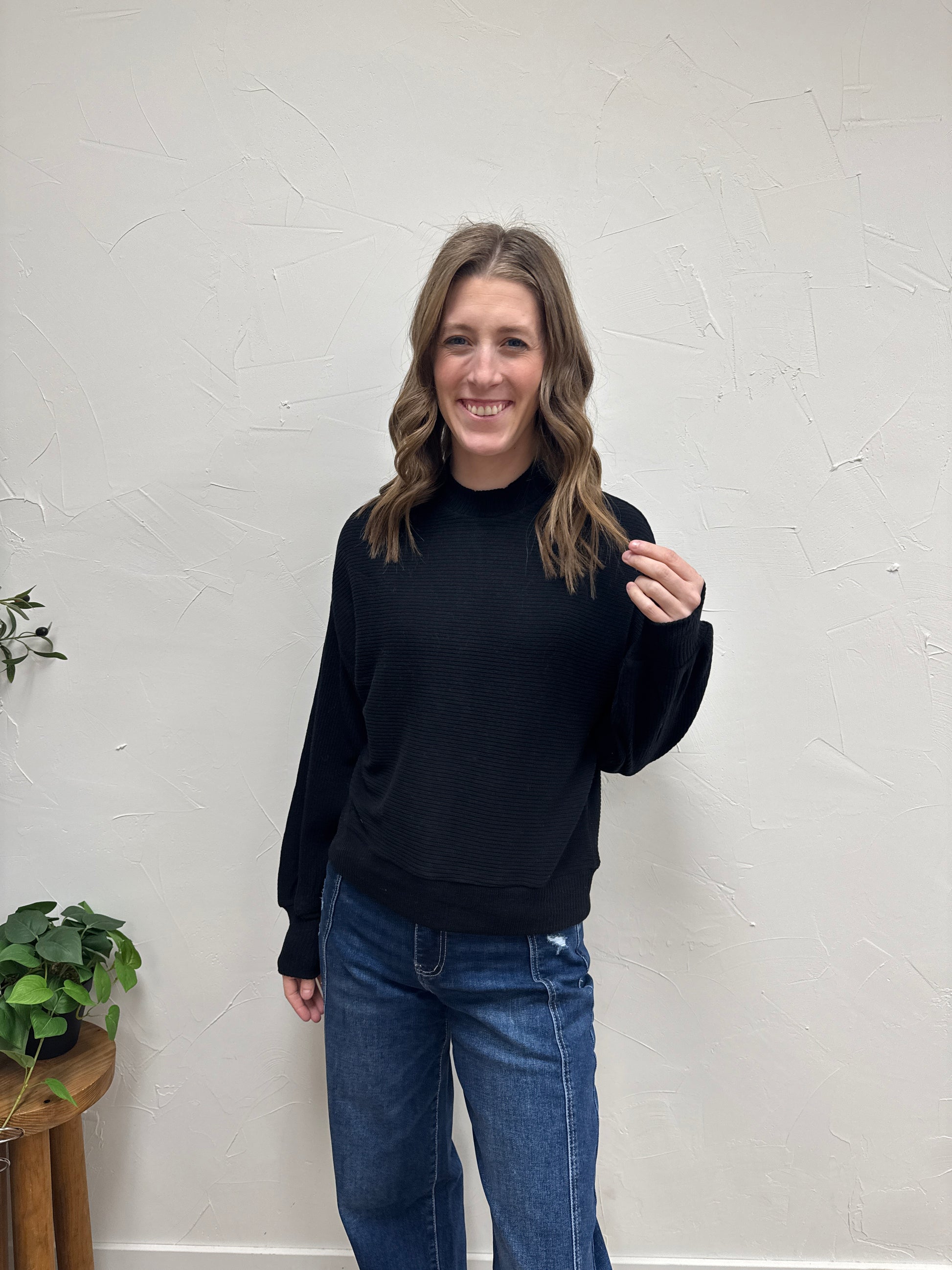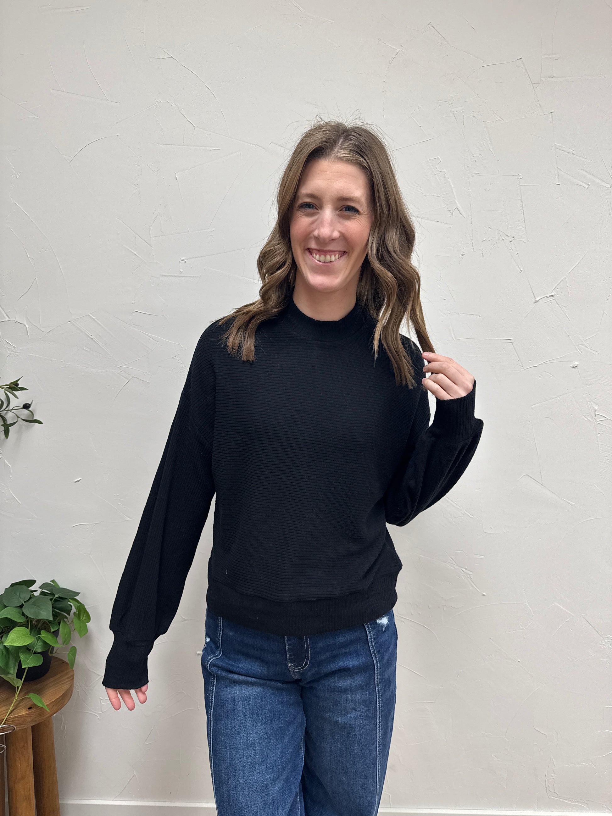 Ribbed Balloon Sleeve Top